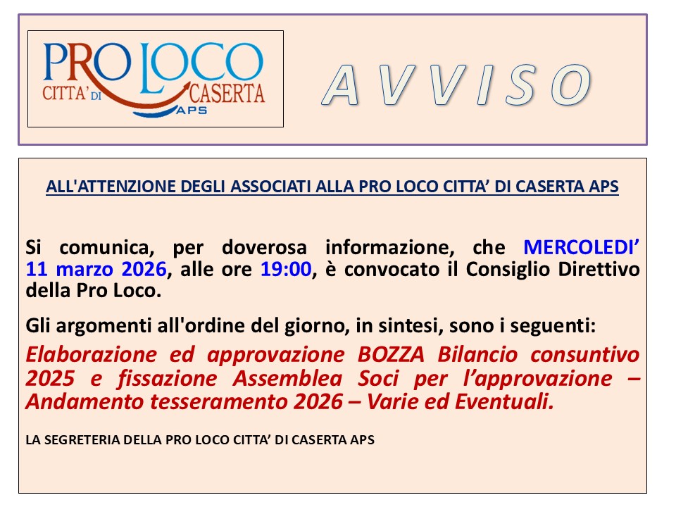 AVVISO AI SOCI DELLA PRO LOCO CITTA’ DI CASERTA APS
