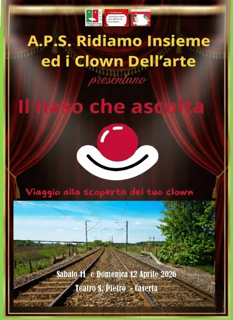 L’APS Ridiamo Insieme ed i Clown Dell’arte presentano lo spettacolo teatrale “IL NASO CHE ASCOLTA” nei giorni: sabato 11 aprile e domenica 12 aprile 2026 presso il Teatro S. Pietro a Caserta (Via Vescovo Michele Natale, 29).