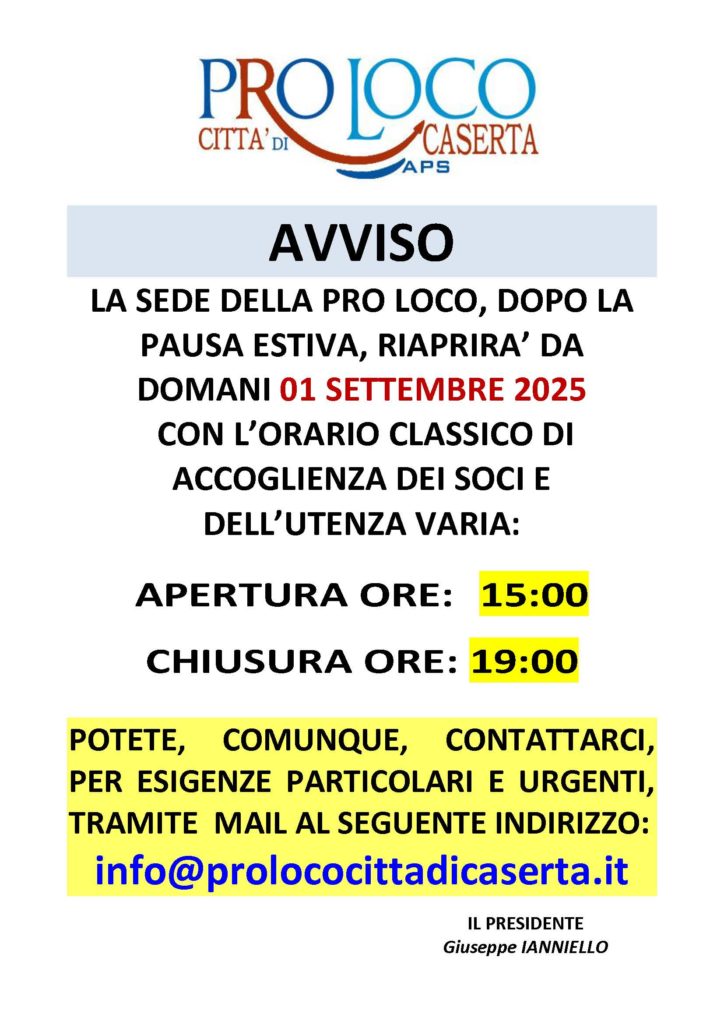 Vista la limitatezza dei posti disponibili si consiglia la prenotazione tramite mail al seguente indirizzo : info@prolococittadicaserta.it